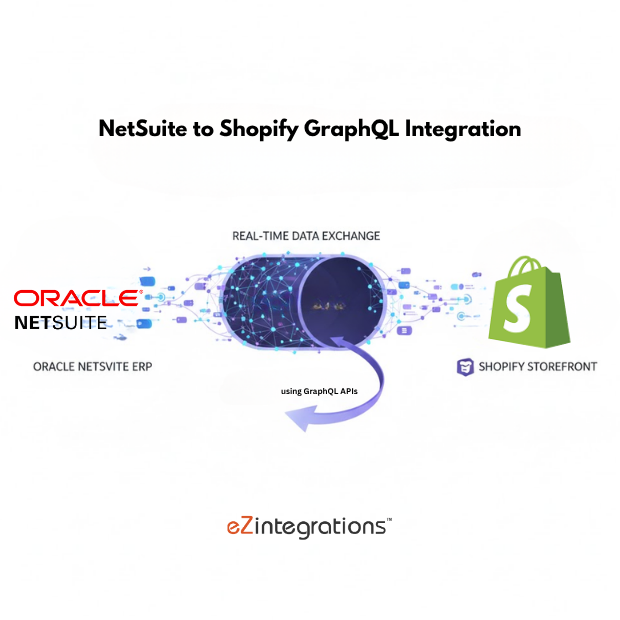 The integration connects NetSuite and Shopify using GraphQL APIs. It continuously monitors updates in NetSuite (like new products, price changes, or stock updates) and automatically syncs them to Shopify without manual intervention.