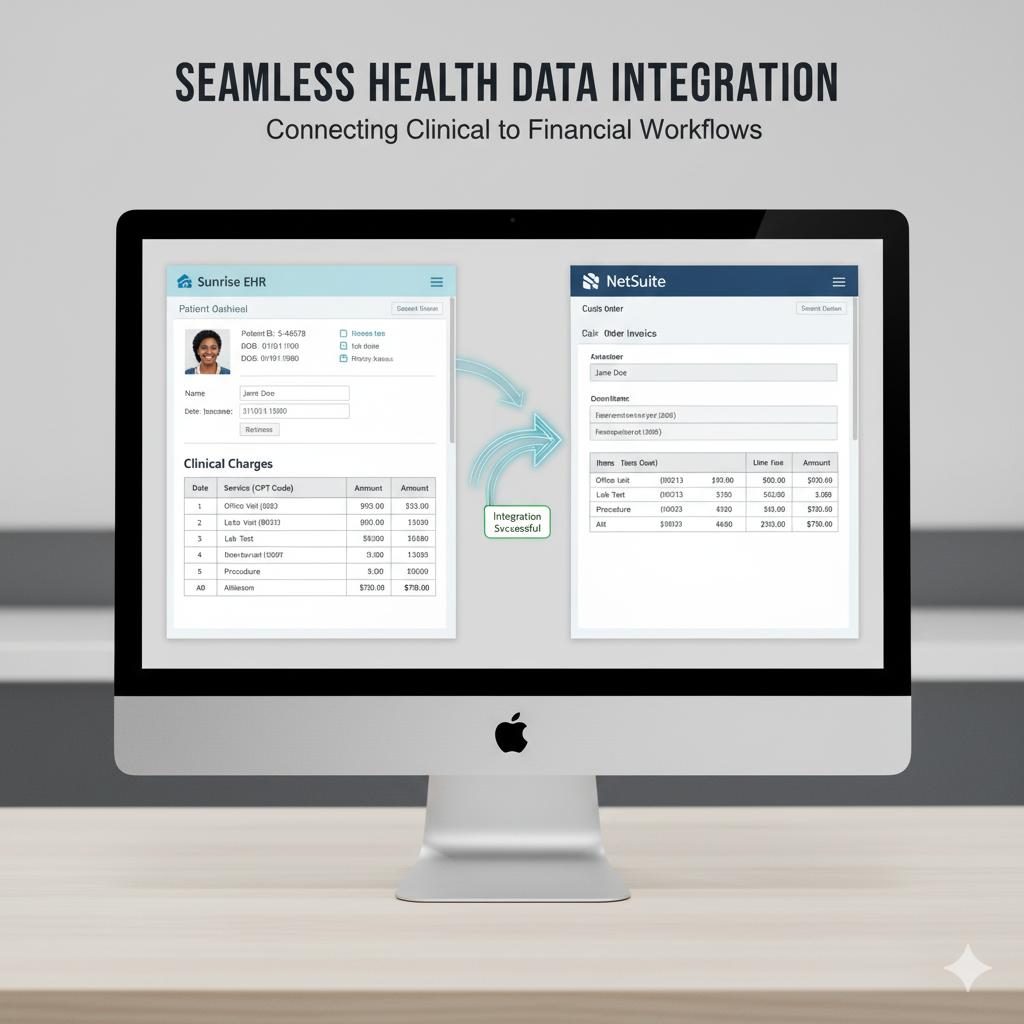 The system automatically maps key EHR fields to the NetSuite schema and validates data for consistency, completeness, and accuracy before ingestion.